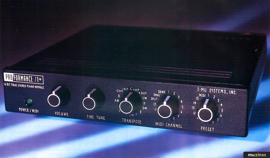 A year or two back Kurzweil released a series of rack modules that put many of their most famous samples, including the piano, into a 2U box. However they were still quite expensive (over £1000), and perhaps weren't marketed as aggressively as some of the Japanese competition. And what of that competition? The surprise success story was the Yamaha EMT10, which was only 12-bit and 8-note polyphonic, but sold well because it was so cheap. Apart from this, the three main competitors — Korg P3, Roland P330 and Yamaha TX1P — have all but faded away. Well, now that the sea of change has settled down a bit, Emu have released the Proformance, a sampled piano module that promises top-notch sounds at a much lower price than you might expect.
