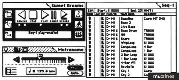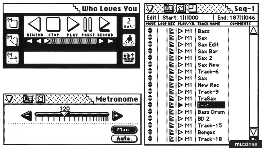 It turned out that all the sequences had already been prepared on an Atari/C-Lab sequencer. Deon had worked on these at home with an up-and-coming young programmer called Gordon. They had used an Oberheim Matrix 1000, an Akai S950 and Casio FZ10M, Alesis HR16 and Roland R5 drum machines, and a Korg M1 synthesizer for the sounds. Now they wanted to record these sequences onto 24-track, adding extra sequences and sounds, and making any last minute edits.