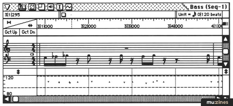 The first thing I did was to set up my gear and synchronise my Performer MIDI sequencer software to an existing SMPTE timecode on tape. This was a fairly easy job using the Jambox 4 SMPTE/MIDI conversion facilities, and within half an hour or so all the gear was rigged up and synchronised to tape. I played the bass line in first whilst listening to some guide tracks already on tape. This was a very simple pattern which I only needed to play once, and then copy and repeat using the sequencer before laying it on tape.