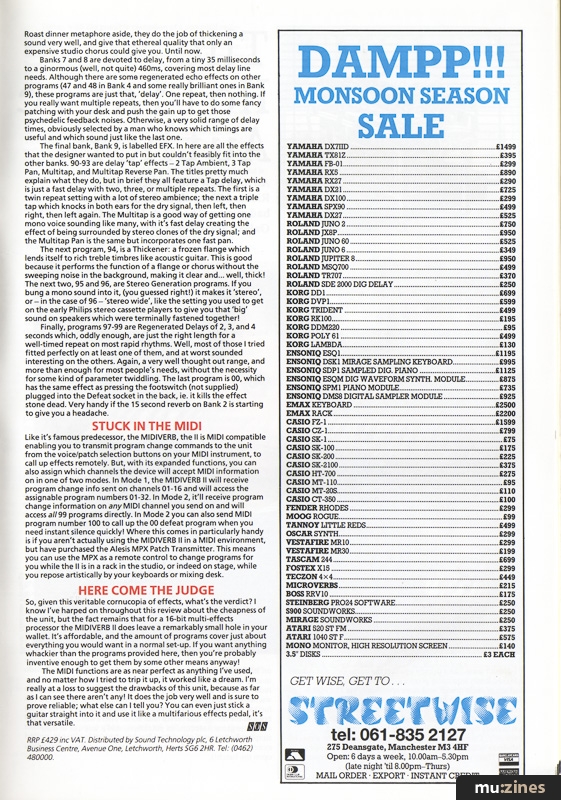 So, given this veritable cornucopia of effects, what's the verdict? I know I've harped on throughout this review about the cheapness of the unit, but the fact remains that for a 16-bit multi-effects processor the MIDIVERB II does leave a remarkably small hole in your wallet. It's affordable, and the amount of programs cover just about everything you would want in a normal set-up. If you want anything whackier than the programs provided here, then you're probably inventive enough to get them by some other means anyway!
