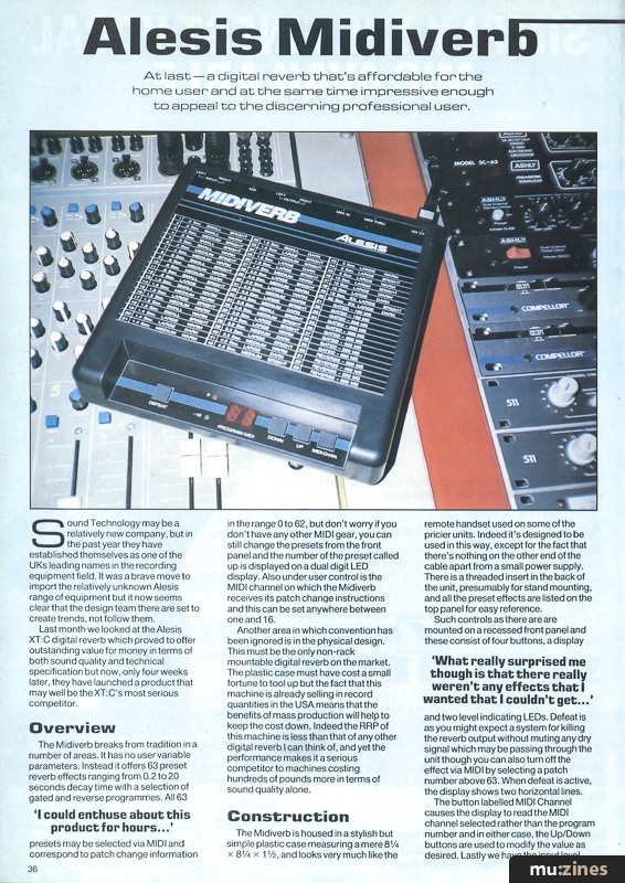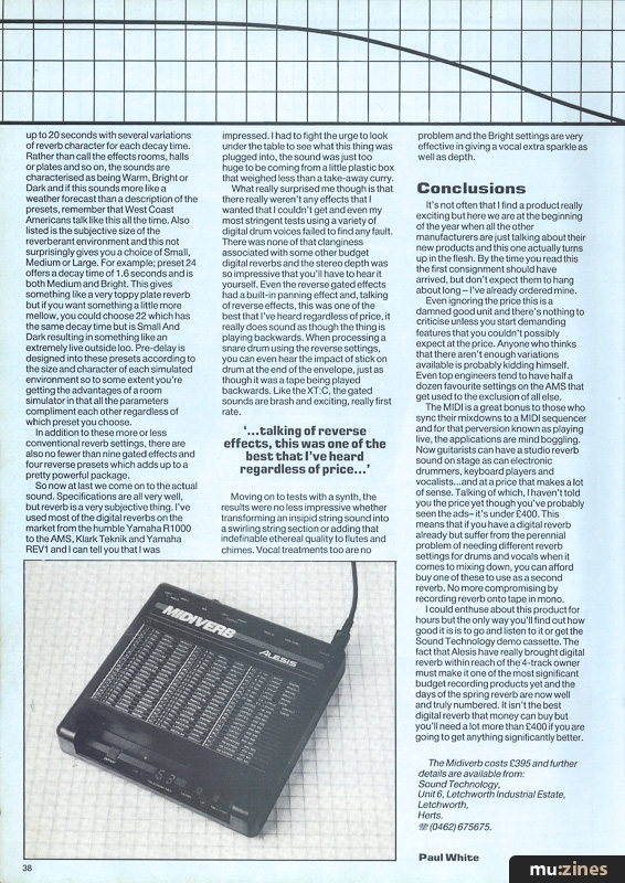 The Midiverb costs £395 and further details are available from: Sound Technology, (Contact Details).