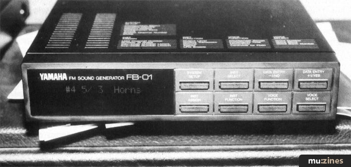 Yamaha, as always, had a few interesting new things including the FB-01 FM Sound Generator which is basically an FM preset expander in a half-rack size case which, though not unattractive, is a break-away from the normal Yamaha line in cosmetics looking more like a car hi fi system than a musical instrument. It has 240 preset FM sounds (four operators as per the DX-21, DX-100 et al) plus a further 96 memories in which you can store any order of these voices you require for performance. Each of the 240 sound memories includes individually programmable pitch bend, octave transpose and detune information, but unfortunately the actual sounds themselves can't be edited without the aid of one of Yamaha's CX-5M computers and the new software package that should be available soon at around £40. In practice I don't actually think that lack of programmability is that much of a problem as most people will probably be more interested in presets than programming anyway.