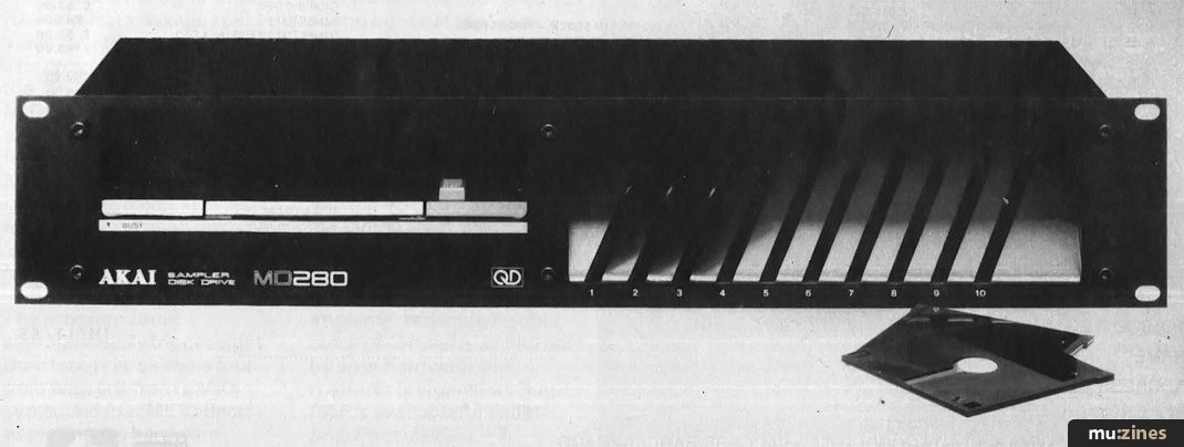 Firstly, the S612 is now being sold as a complete package including Akai's own disk drive for under £1000. The diskdrive (or Quick Disk asAkai call it) connects to the rear of the sampler via two connectors — one for data transfer and one for power supply. Having a disk drive for storage of your samples totally transforms the system from being a slightly posh sampler to being of the 'truly spiffing' variety. Each double-sided quick disk holds a complete sample on each of its sides and loading/dumping to disk is very easy and certainly useable in a live environment as it only takes three or four seconds to load each new sample.