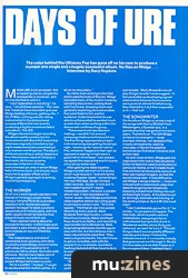 "Although you'll hear little guitar on the album as such, I used an unconventional approach to the whole way the guitar is used. I've done it by building up parts, I've done it by breaking a guitar down to two note sections and making noises, and turning tapes over, sampling bits, putting soft attack on guitar notes, and playing it on the Emulator. It means you can end up with really odd guitar solos and when you listen to it in stereo you get all these sounds breaking in from all over the place. That's what I find interesting, not being able to play a million notes a second.