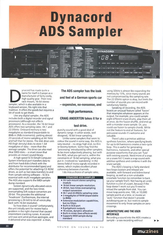 Some people will need exactly what the ADS has to offer - high sound quality and the ability to come up with some wild new sounds (even if it does take some work) - and fall in love with the unit, electing to pay the price required for uncoloured 16-bit sound. Others will seek more cost-effective solutions to their sampling needs, or higher-end machines (such as the Emulator III) in order to gain access to features like triggering samples via MIDI Time Code. Once again, here we have a product that may not be the 'ultimate' sampler, but one which addresses a specific niche - and does so in style.