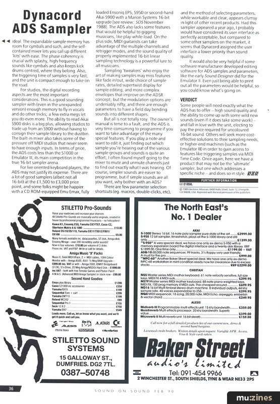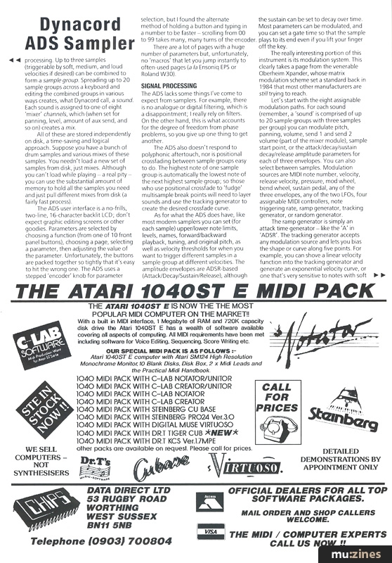 For live oriented keyboard players, the ADS may not justify its expense. There are a lot of good samplers (albeit not all 16-bit) at the £1,500 to £3,000 price point, and some folks might be happier with a CD ROM-equipped Emu Emax, fully loaded Ensoniq EPS, S950 or second-hand Akai S900 with a Marion Systems 16-bit upgrade [see review: SOS December 1988]. The ADS also lacks some features that would be helpful to gigging musicians, like play-while-load. On the plus side, MIDI guitarists can take advantage of the multiple channels and retrigger modes, and the sound quality of properly implemented 16-bit linear sampling technology is a powerful lure to all musicians.