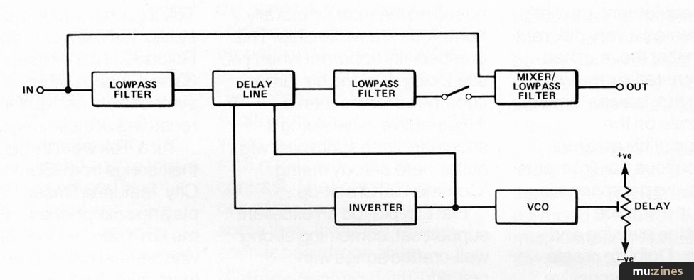 Those who like to experiment might like to try using a low frequency triangle or sine-wave oscillator to vary the delay time, and this is just a matter of coupling the modulation signal to pin nine of IC3. This gives a mini chorus effect, but this effect is practically identical to the dual tracking type, and with many input signals no obvious difference will be detectable. The unit can be used as a general purpose delay line by connecting a link wire in place of S1 and omitting C2 and R1. VR2 enables the delay to be varied between about one and 13 milliseconds.
