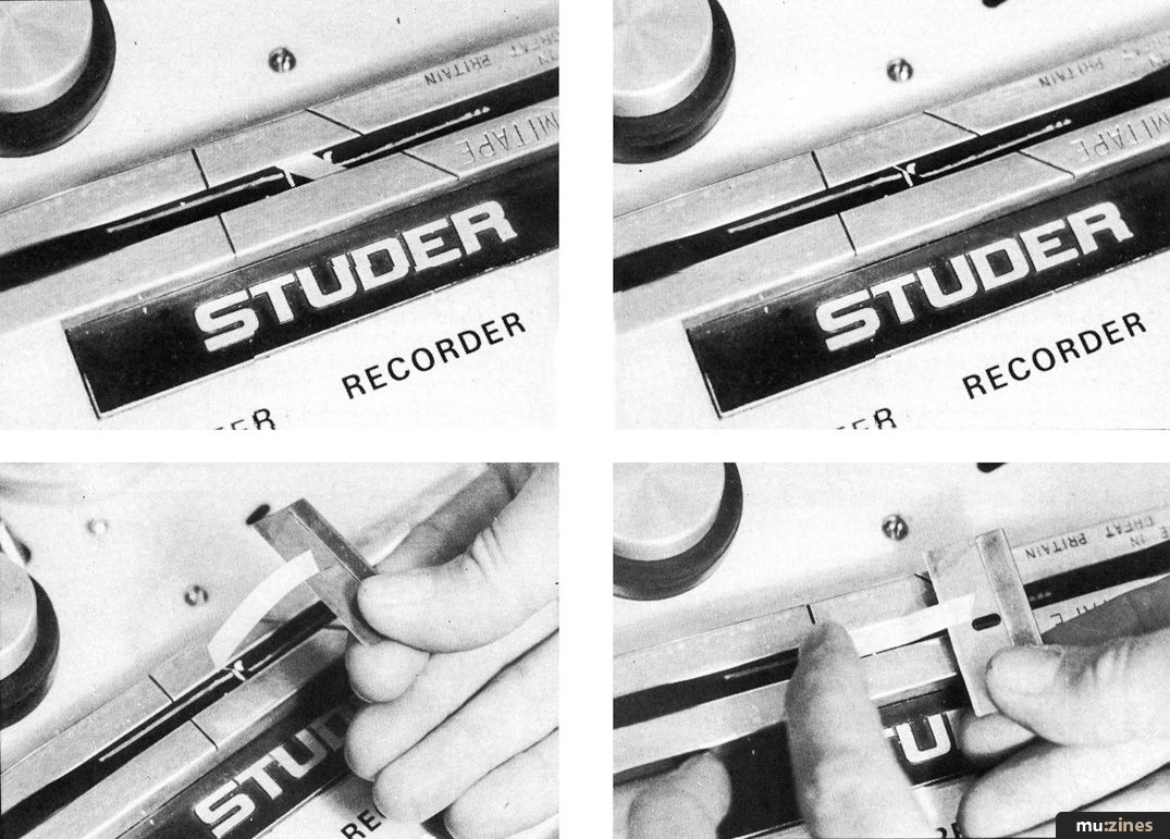 On a machine with an edit facility, you can run the tape past the head by gently turning the spools by hand. Devoid of such a feature, you might have to move the tape itself (carefully) and pull it past the head. Either way you're looking for the exact beat where the splice should occur (only you know where that is) and then position it precisely over the head. "Leave six to eight inches of tape free either side so you've got enough slack to take it to the splicing block. Never pull the tape hard, because it will stretch."