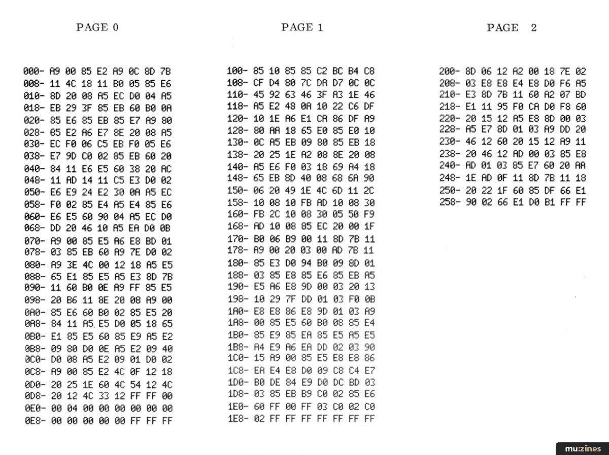These programs will all be "complete" in that once they are running, the system loses any "computer personality" that it may have had. All of the features that the program offers will be available with one or two touches of the "command" (computer) keyboard. Whereas the composer program that we did last time could only be changed by resetting the computer, using the Monitor to deposit data into memory, and running the program again (very arcane stuff, I sympathize), these programs accept all recognized commands and data "on the fly". You can forget that the computer's there because its control keys are dedicated exclusively to functions assigned them by the program. "This key makes it play — this key makes it play faster." Easy.