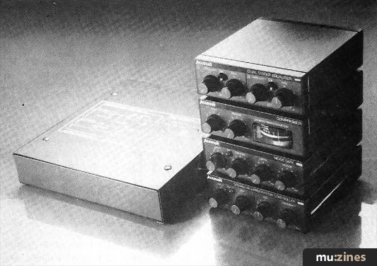 Bandive recently introduced new additions to the Accessit range of budget-priced studio effects. There's a sweep equaliser with two bands, each switchable to a high and low frequency setting and with individual gain: a noise gate with adjustable trip threshold: and a compressor with input and release controls and a moving coil meter to indicate dynamic range reduction. There's also a reverb unit coupled to a remote stereo reverberation controller featuring an LED peak input indicator, connection being made via three leads which make a mix of 'wet' and 'dry' signal available.