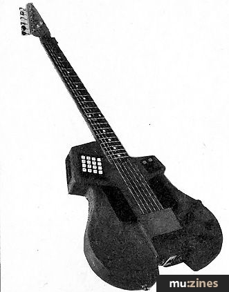 Different control settings can be called up via the guitar's keypad programmer, while there's an 8 segment alphanumeric readout to let you know what's going on. Guitar settings can be stored on any MIDI equipped computer. While other guitar controllers use pitch to voltage conversion to translate signals from guitar to synth the Voyetra's microprocessor scans the frets and strings for activity and converts that information into MIDI signals. Thus the guitar can be played by simply touching the strings to the frets. Each individual string is available as a controller for different synthesiser parameters, while 8 programmable knobs and switches provide instant access to other synth parameters during a performance.
