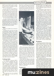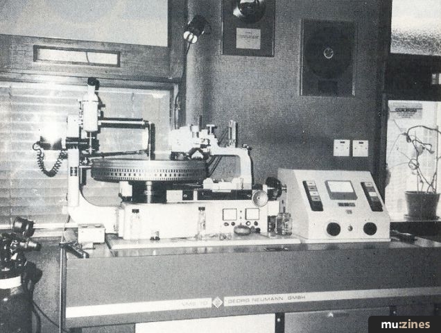 Disc cutting has always seemed to me to be an outlandishly expensive stage of record production, but this brief closer look quickly shows you why. The overheads are astronomical! The disc material itself is solid aluminium coated with acetate which is very easily scratched (obviously). There is an average wastage of 20—30% on these, making the raw materials very expensive. The cutting head is replaced two or three times a week and helium doesn't exactly come cheap, so it all mounts up quite rapidly. Add all this to the state of the art effects and machinery, as well as your engineer's time, and perhaps you aren't getting such a rough deal after all. Record companies take note.