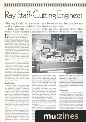"Mixing Desk" is a series that focuses on the producers and engineers behind the studio controls. This month Janet Angus gets in the groove with Ray Staff, Chief Cutting Engineer at Trident Studios, London.