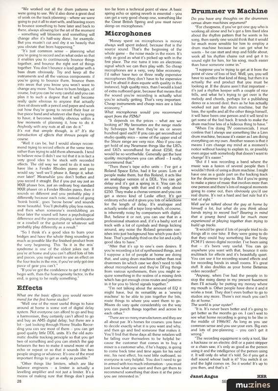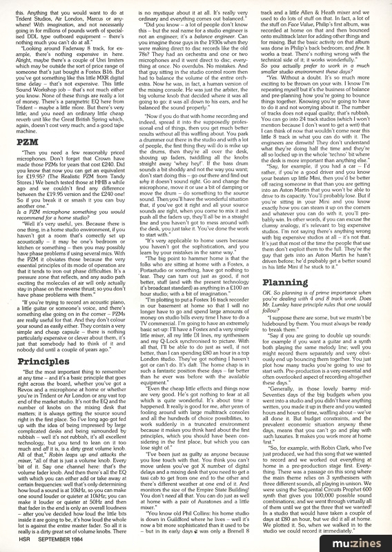 "The big point to hammer home is that the folks who are sitting at home with a Fostex, a Portastudio or something, have got nothing to fear. They can turn out just as good, if not better, stuff (and with the present technology it's broadcast standard) as anything in a £100 an hour studio; with a bit of imagination."