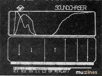 These aren't the only limitations to one's synthetic aspirations. Having drawn in some likely contours, the bottom half of the EDIT display is engaged by entering 'VP' (Voice Panel). This allows the user to set the 'soft' switches and sliders with which to apply the contours to the voice card operation. Once this has been done, 'P' (Play) can be entered and the keyboard actually played.
