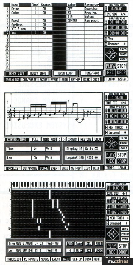 However, one of the program's major attractions is the ability to upgrade it by adding extra modules such as score printing, score editing, and full Grid, Tracklist, Arrange, Process and Disk pages. Nevertheless, it's worth considering your future plans carefully for at between £20-40 per add-on, it could be cheaper going straight for Prodigy at £135 which, amongst other things, a nice fat explanatory manual.