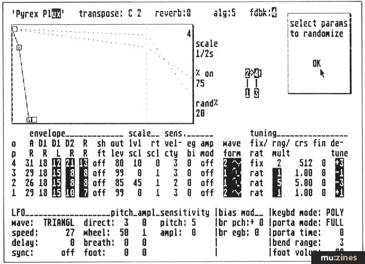 Computers aren't generally regarded as being very good at actually creating in their own right, but careful use of the randomisation facilities on a VES can allow the user to generate original sounds that they might never have thought of otherwise. The key to success here is to use randomisation intelligently, not artificially, because only a small percentage of sounds generated by blind randomisation will be even usable. The software has no way of telling what sounds good or bad, so this is where you come in. In the bad old days of Hybrid Arts' DX Android, a randomisation procedure was just that - all the patch parameters were changed by a random amount, and if you didn't like the results, well, you could always try again. And again...