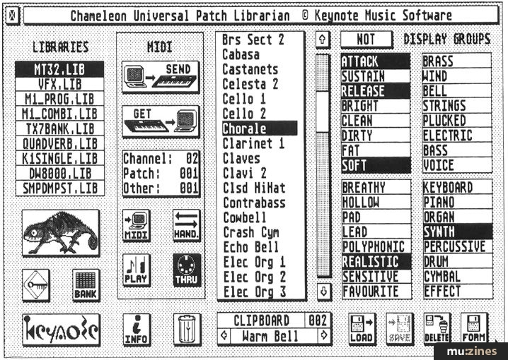 Looking ahead, the coming generation of librarians will offer database-like features, enabling you to locate and use whatever patch you have in mind from a library of thousands of sounds - a case in point being Keynote's forthcoming Chameleon. A wide range of user-definable descriptive terms such as 'bright', 'noisy', 'breathy', 'plucked', 'percussive', and even 'favourite', can be assigned to each patch, so that a range of sounds from a huge library can be quickly auditioned. You no longer have to remember whether BRSPAD means 'brass pad' or 'bright spade', or just what sort of piano EPNO12 is. Figure it out as you put the patch into your library, give it a few labels, and the next time you are looking for it, all you have to remember is what it sounds like, not what you called it (Figure 7). (Similar features are also available on Steinberg's current crop of Synthworks editors; Steinberg refer to it as 'semantic tagging'.)