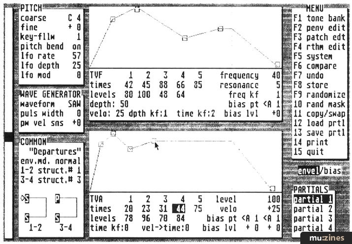 Of course, even a really good generic editor/librarian won't solve every problem. There may be an instrument or, as so often happens these days, a whole family of instruments, which are released after the generic systems hit the streets, and it is quite conceivable that such an instrument may require editing software which existing generic systems are simply not equipped to provide - but which a single instrument VES could cater for. There is also the problem of where to put such a piece of generic software. Sequencers like Virtuoso and Dr.T's KCSII don't use GEM, and some Steinberg software is notorious for crashing when used with desk accessories. Perhaps the answer is a MIDI merger and a second computer - that suits me fine, but what about my bank manager?