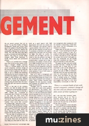 "Up until recently none of our acts had a manager", Miller explains, "they all worked directly with the record company. Sometimes it is helpful to have another person to refer to, although it's good that record companies and bands can have a good relationship by themselves. A good tour manager who takes no artistic decisions takes some of the pressure off. Depeche Mode manage themselves, although they employ three people - two to look after tours and one to handle the fan club. I used to be put off by managers because I wanted to deal directly with the bands, but now, depending on the nature of the group, I prefer a manager. This is partly because we have grown as a company, to the extent that personal contact with bands has become increasingly difficult.