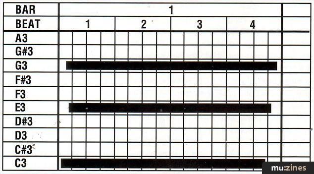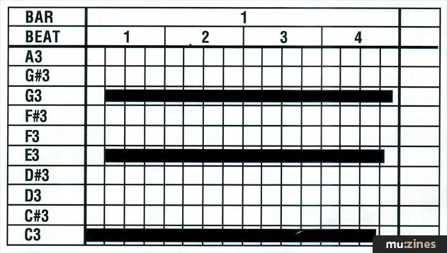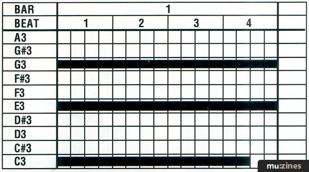 Quantising is what happens when a sequencer moves notes to the nearest division of a bar; you decide what the value of that division is. If you quantise to 8ths, all notes will be moved to the nearest quaver, or eighth note. It's like having a grid where all events have to lie on the vertical lines. For instance, Figure 1 shows a C major chord played on the downbeat of the bar (or at least that was the intention). Each crotchet, or quarter note, is divided into four so the vertical lines represent 16ths.