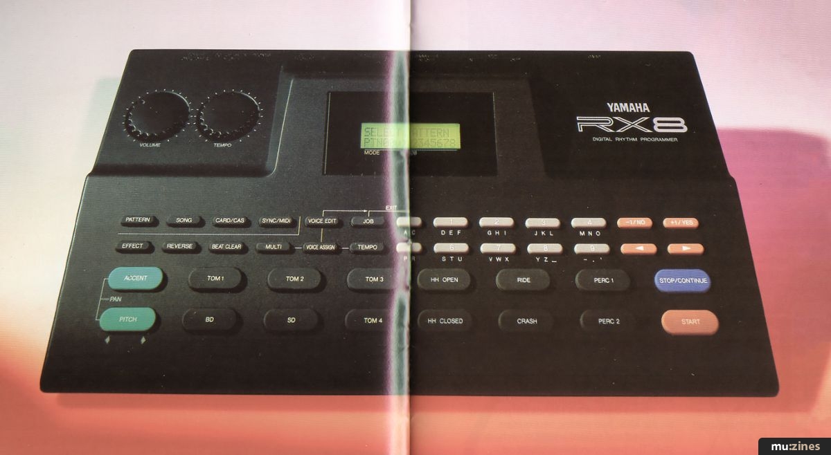 It struck me the other day that of all the fruits of technology's applications in music, the drum machine is perhaps the most widely used. I mean, everyone uses drum machines, and even relatively luddite guitarists and bassists have been known to crave the latest digital beat box in the search for the ideal personal backing device. It follows that the Yamaha RX8 is therefore probably going to look like an interesting proposition to many musicians: not only is it Yamaha's latest offering in the drum box stakes, but it's now the cheapest 16-bit machine on the market. Besides this obvious selling point, the RX8 offers 43 tunable sounds, the facility to play all sounds in reverse, RAM card storage of song/pattern/voice data, and the ability to trigger external modules via MIDI as well as be triggered itself.