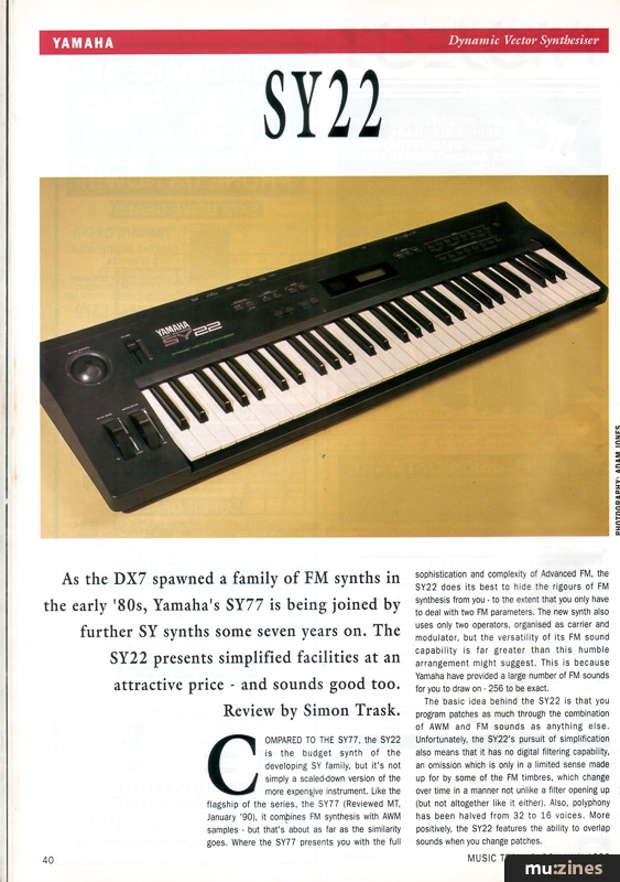 As the DX7 spawned a family of FM synths in the early '80s, Yamaha's SY77 is being joined by further SY synths some seven years on. The SY22 presents simplified facilities at an attractive price - and sounds good too.