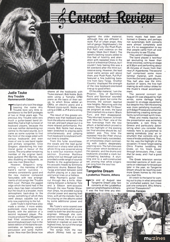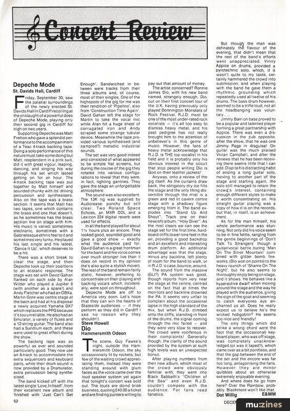 Judie Tzuke, Tangerine Dream, Depeche Mode, Dio