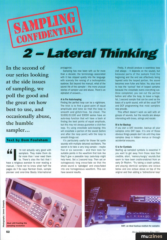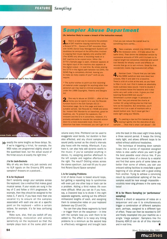 Dom Foulsham continues our series on the digital ins and outs of sampling, and talks to some arch sampling professionals about the tricks of their trade. Discover how to get a convincing crash cymbal; how to break the rules creatively and stay legal; and 20 things to do with a redundant manual. Read it and weep, Jive Bunny |
