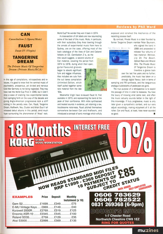Bob WilliamsBob Williams has one of the finest collections of analogue synthesisers in the world, and cherishes them with a care that would make the Science Museum blush. Peter Forrest crosses hill and dale to Cornwall to take a long, loving look, and uncovers a whole network of Moog and Mellotron devotees. Whatever next - 'The Antique Rhodes Show'? |