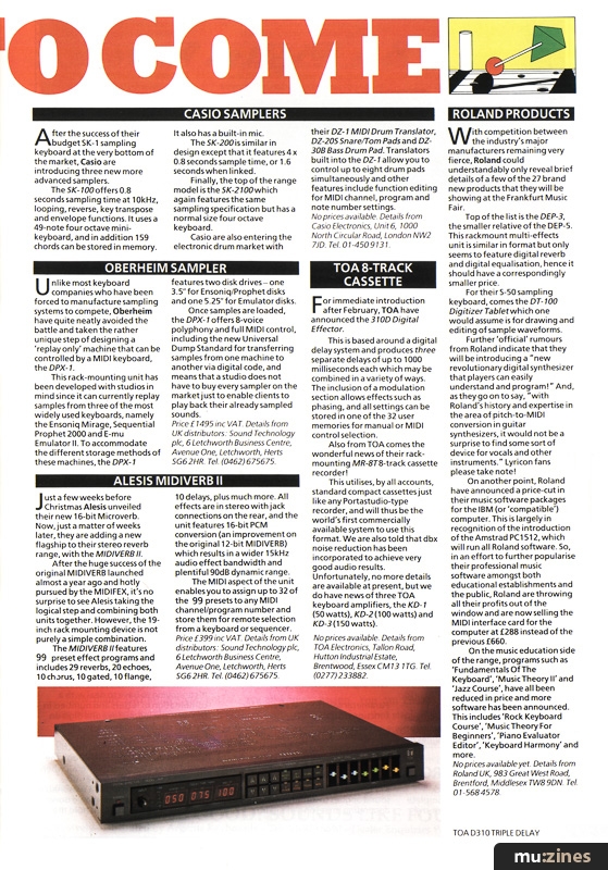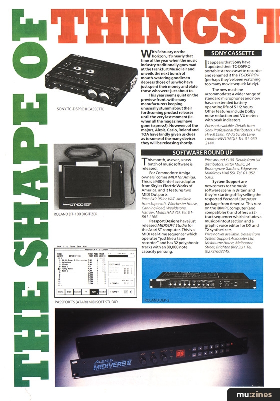 Another digital reverb from Alesis, a waveform digitizing pad for the Roland S50 sampler, Passport's multitrack software for the Atari ST, exclusive news of the world's first ever 8-track recorder to use standard cassettes, and more...