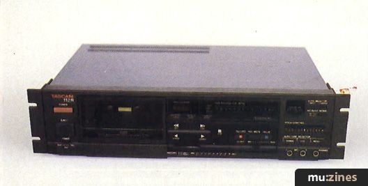 Tascam's 112R is a smart front-loading cassette deck that can be rack mounted simply by bolting on a pair of optional rack ears. Because it features an auto-reverse function, there are two erase heads, one for each direction, and both the record and play heads have four tracks so that they can accommodate tape travelling in either direction without having to change position. By having a separate record and play head, the 112R allows true off-tape monitoring as you record, so that you can do an instant comparison between what goes in and what comes out to verify the quality of the recording. Moreover, an optional remote control unit may be added by means of which a selection of sophisticated programme access modes may be introduced, including tune search and a useful preview feature which plays the first few bars of each song before moving to the next one. The only snag is that without the remote control unit, these facilities are impossible to access.