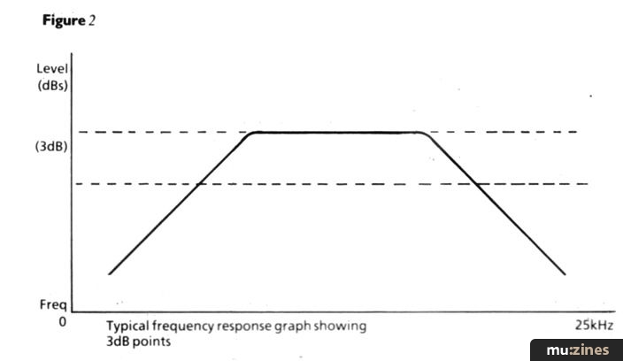 Time for a word of warning. Manufacturers have a tendency to bend the rules a bit in this area by claiming a response of X Hz to Y kHz, plus or minus 3dB, which gives them a total of 6dB leeway; so these figures appear better to the uninitiated. If a graph is provided with the equipment you're looking at, take a look at it and you'll be able to locate the 3dB points yourself. A picture is worth a thousand words, so eyes down to Figure 2, which shows a typical response curve with the 3dB points marked on.