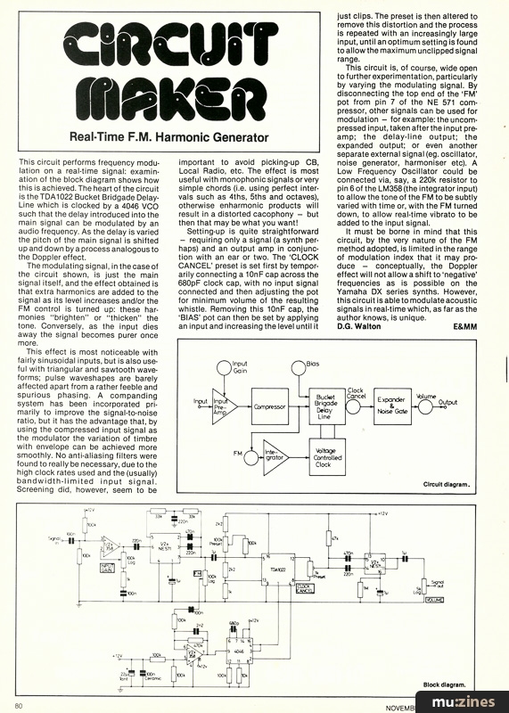 Real-Time F.M. Harmonic GeneratorArticle from Electronics & Music Maker, November 1983 | |