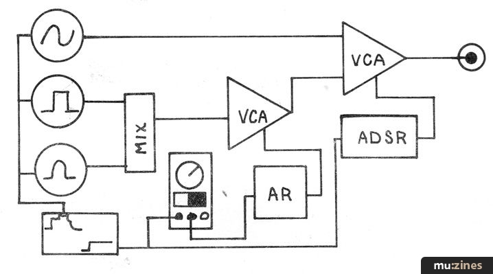 Here is a handy circuit designed to use in conjunction with AR and ADSRs. It is a step and trigger delay. It can delay the start of a step or trigger pulse from the keyboard. The delay is from 2 ms. to about 2 seconds. When a key is pressed it will output a step or a trigger pulse after a preset time determined by a front panel control. If a key is struck again before the timing cycle has completed, it will re-set and start a new cycle on the last key down. Figure 1 shows the complete schematic.