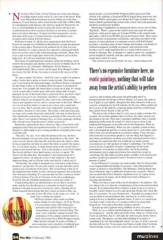 Power Station, NYC | Tony BongioviArticle from The Mix, February 1995 | |