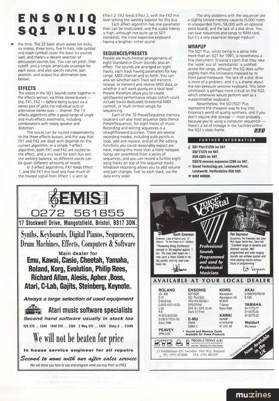 Almost exactly a year since the launch of the ensoniq SQ1, an updated version has arrived. Paul Ireson looks at the 1991 model of Ensoniq's most affordable workstation.