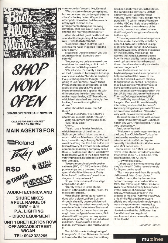 ForeignerArticle from International Musician & Recording World, April 1985 | |