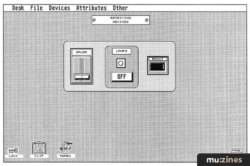 The program has several devices which are used to transmit and receive MIDI messages. These are large and quite attractive designs selected from a menu and dragged around the screen in order to create your own control panel layout. This is fun. You can create up to 10 screens or pages using these devices. Let's say you want to create an editor for a synth with eight tones, elements, parts, partials - or whatever. You'd hive off to the Devices menu and select those devices which represent the parameters used by the said partials.