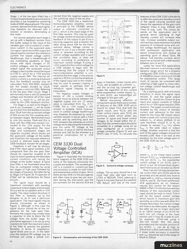Having looked at the CEM 3340 Voltage Controlled Oscillator last month, let us now proceed to the VCF, VCA and EG.