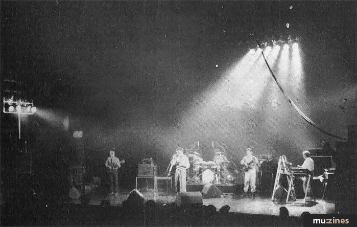 At the time of our interview (September issue) John Foxx was still planning his recent tour, his first live performances since the days of Ultravox. Now the tour's over it seems to have been a great success, with the London date at the Dominion being an obvious high spot. John's put together a talented band capable of reproducing most of the subtleties of those parts of his recorded works that he's interested in playing live, and the addition of a very powerful and colourful light show together with lots of smoke and strobes for the spooky bits proved a welcome bonus. Much of the set was taken from the new album 'The Golden Section', opening with 'Running On Thin Ice With Tigers' and proceeding to speed through a selection of up-tempo numbers characterised by heavy Simmons percussion, Roland Vocoder strings and wailing guitar. John's vocal mike was sent partly to the vocoder input of the Roland keyboard with the result of a 'human host' of voices behind his every inflection. Then some older songs were introduced going as far back as 'The Quiet Men' and 'Slow Motion', then into a selection from 'The Garden' including the atmospheric title track.
