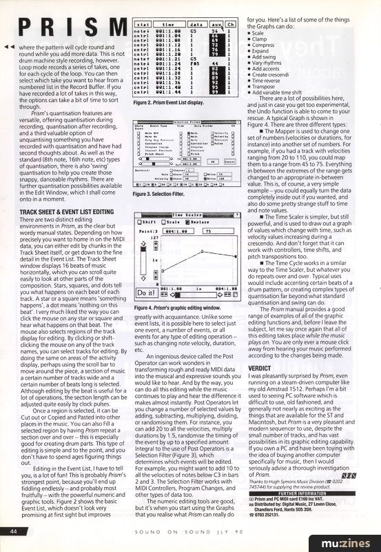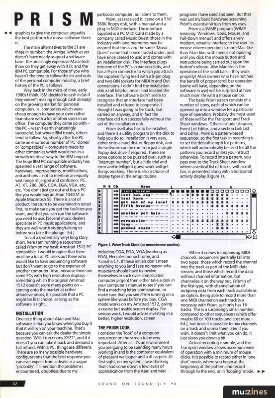 I was pleasantly surprised by Prism, even running on a steam-driven computer like my old Amstrad 1512. Perhaps I'm a bit used to seeing PC software which is difficult to use, old fashioned, and generally not nearly as exciting as the things that are available for the ST and Macintosh, but Prism is a very pleasant and modern sequencer to use, despite the small number of tracks, and has vast possibilities in its graphic editing capability. If you own a PC and have been toying with the idea of buying another computer specifically for music, then I would seriously advise a thorough investigation of Prism.