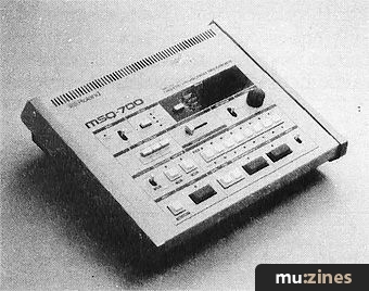 Used with MIDI instruments, the great advantage of the MSQ-700 is that it is not just a triggering machine, but can remember all MIDI parameters. This means it can remember patches and so alter the sounds of the controlled synthesizer, it can remember pitch bend, keyboard split, hold, dynamics and so on. Thus for the first time a microcomposer can play a complex piece with a variety of different sounds and effects without someone having to adjust the synthesizer to produce those sounds. And because MIDI is a multi-channel system one MSQ-700 can control more than one synthesizer. This revolutionary development means that a band can play an entire stage set while in the pub across the road.