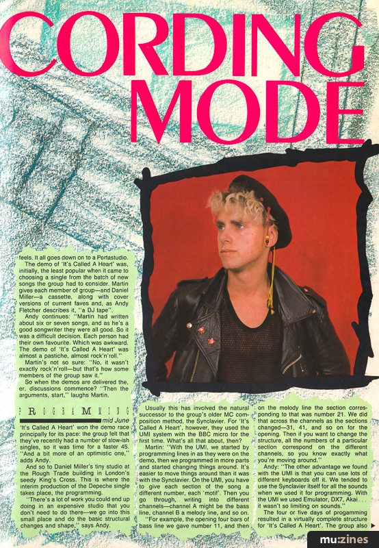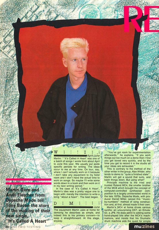 Principle machine is the tried and trusted Roland MC4, the smaller brother of the MC8 which brought the concept of computer-controlled synthesiser composition to a largely uninterested world in the late 1970s. Depeche Mode, with producer Daniel Miller, seized this "music-by-numbers" method of song construction and, at first, almost made it their own.