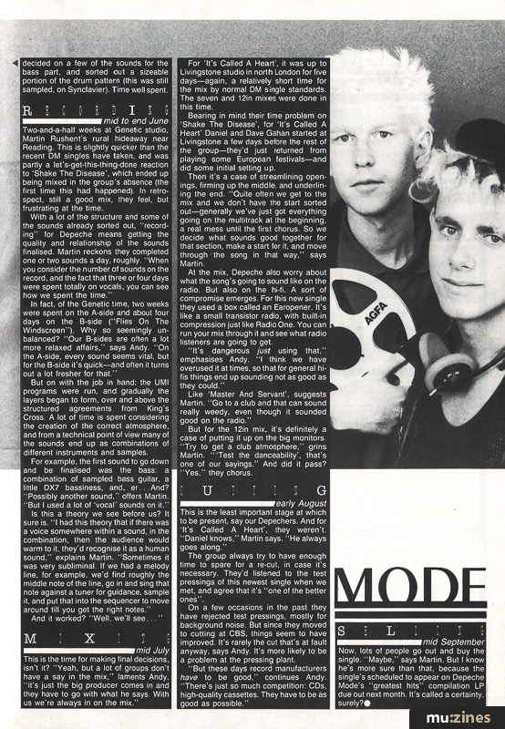 For 'It's Called A Heart', it was up to Livingstone studio in north London for five days — again, a relatively short time for the mix by normal DM single standards. The seven and 12in mixes were done in this time.