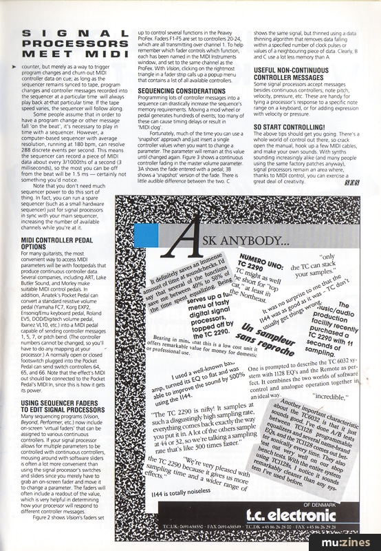 The above tips should get you going. There's a whole world of control out there, so crack open the manual, hook up a few MIDI cables, and make your own sounds. With synths sounding increasingly alike (and many people using the same factory patches anyway), signal processors remain an area where, thanks to MIDI control, you can exercise a great deal of creativity.