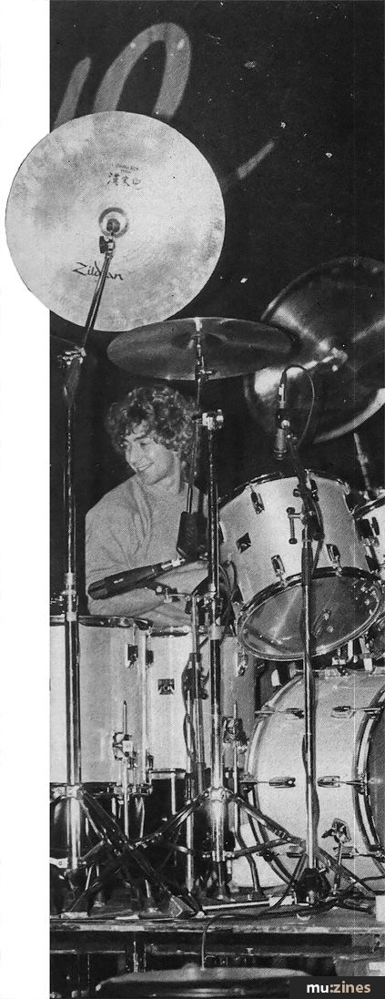 "I used Paiste for about a year, year and a half but I went back to Zildjian in the end — I'd always used them before. In fact I can remember the first secondhand Zildjian I ever had — it was actually an old 'K' which cost me £12 or £16 — I couldn't believe it, it was amazing!