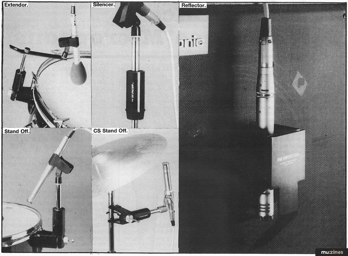 However, a new solution to all these problems has appeared, in the shape of the Stand Off range of shock mounted units, marketed in this country by Connectronics. Basically these consist of four small clip-on mic stands, and one unit which reflects sound towards a microphone contained within it. I shall endeavour to explain further.