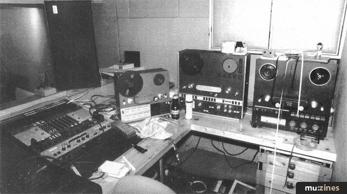 The walls are all either new brick, or hessian panels, giving the main studio a clean but not sterile sound. The overall atmosphere is of space, making it very comfortable for long sessions. Recording and outboard equipment is diverse but adequate, comparing favourably with many other A8 studios around town. Apart from the obvious Fostex A8 multitrack recorder, there is a Teac 32 2B ½ track, Dynacord digital reverb, Dynacord and Powertran digital delays, and the Ibanez HD 1000 delay, compressor/gates, monitoring by Quad and Rogers and mikes by AKG, Shure, Beyer, and Calrec, with built in PZMs in the live room.