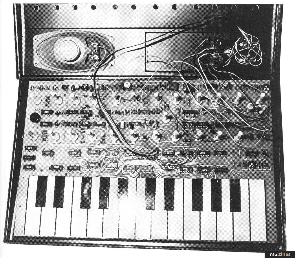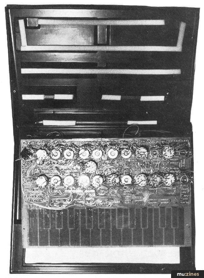 The entire instrument is housed in an unbreakable ABS case about the size of a large transistor radio, but quite a bit lighter at roughly 4lb with batteries. This opens up a whole new world to keyboard players. The Wasp is much lighter than a guitar, so no longer will stage musicians be rooted to the spot in front of banks of keyboards, as it's easy with the Wasp to walk around while playing it. Also since it is battery-powered, and has a built-in speaker, one can play the Wasp anywhere: in the van on the way to a gig; in bed; in the queue at the social security office; it even opens the way for the synthesiser busker.